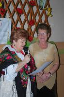 Następnie przewodnicząca w imieniu wszystkich zebranych złożyła okolicznościowe życzenia, a członek zespołu Daniel wręczał kwiaty jubilatkom, które obchodziły swoje urodziny, 80-lat pani Teresa Jędrzejko, 70-lat pani Janina Szubert, zaś członkini Koła pani Maria Carbol obchodziła wraz z mężem 50 - lecie pożycia małżeńskiego.