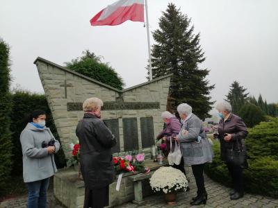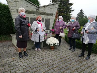 Członkinie Zarządu Koła Gospodyń Wiejskich „Strażniczki Tradycji” postanowiły w przeddzień Święta Niepodległości zapalić „znicz pamięci” na grobach postaci ważnych dla naszej miejscowości Pisarzowice, którzy spoczywają na naszym cmentarzu. Odwiedzając groby, pomniki pamięci, przewodnicząca przedstawiła członkiniom krótką historię osoby spoczywającej w tych miejscach. Panie rozpoczęły spacer pamięci od pomnika ku czci poległych mieszkańców podczas I i II Wojny Światowej. Pod pomnikiem od 1989 roku odbywały się uroczystości patriotyczne i apele poległych. Obostrzenia związane z pandemią niestety uniemożliwiły w tym roku uczcić poległych w ten właśnie sposób. Następnie odwiedziły grób rodzinny Barbary Bulowskiej - właścicielki górnego dworu oraz wnuka Witolda, grób Joanny Syskowej z Kleinów - nauczycielki i drugiej żony ówczesnego kierownika szkoły, zmarłej w 1906 r. Na płycie nagrobnej nauczycielki ludowej, 24-letniej Bogumiły Bieniek, która zmarła 1904 roku złożyły kwiaty co od wielu lat Zarząd KGW z Pisarzowic czyni. Panie odwiedziły również miejsce pochówku pierwszej położnej w Pisarzowicach Marii Lach. Grób kierownika szkoły jak i nauczyciela Kazimierza Otłoga, który kierownikiem szkoły był od 1945 roku do 1977 roku oraz nauczycielki Stefanii Papla. Panie zapaliły znicz przed kaplicą cmentarną gdzie w podziemiach są pochowani księża pracujący w naszej parafii. Kaplicę tę ufundował ks. Mika w 1863 roku jako grobowiec dla księży. Spacer "płomieniem zniczy pamięci" panie zakończyły przy tablicy pamiątkowej poświęconej urodzonemu w Pisarzowicach pułkownikowi Marianowi Pilarskiemu. Pułkownik Pilarski to bohater I jak i II Wojny Światowej. Żołnierz wyklęty, aresztowany przez WUBP. Skazany na czterokrotną karę śmierci. Wyrok wykonano 4 marca 1952 r. na zamku w Lublinie. Zatrzymały się także i zadumały przy tablicy umieszczonej na ścianie budynku GCDT w Pisarzowicach, a dedykowanej 7 pisarzowickim ochotnikom, członkom ówczesnego Towarzystwa Gimnastycznego ”Sokół” i umundurowanym dzięki składkom Towarzystwa. To oni wyruszyli 2 sierpnia 1914 roku koleją z Kóz do Wadowic, by zaciągnąć się do Legionów Polskich. Ich śladem poszło w niedługim czasie około 200 innych ochotników.