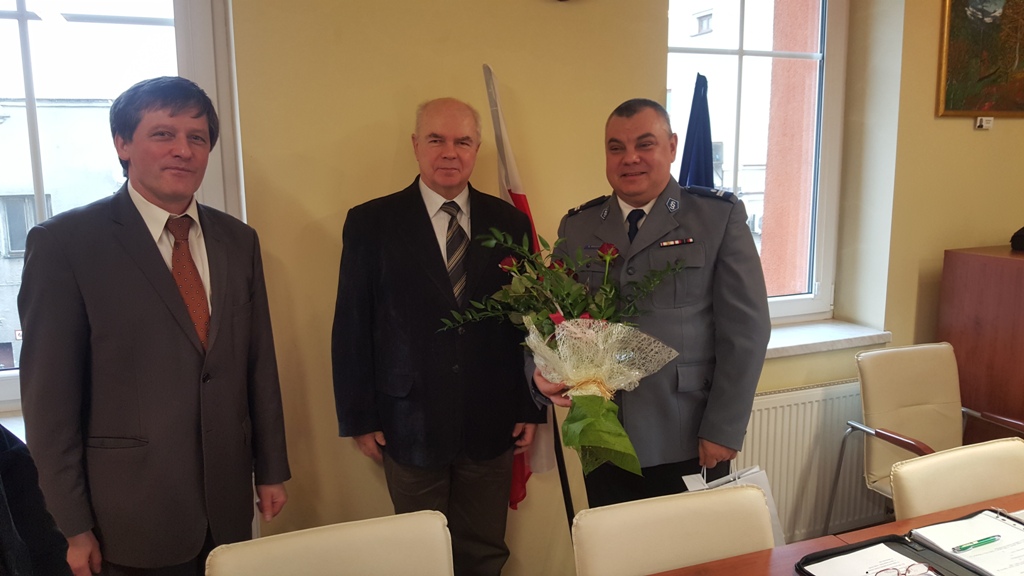 Pożegnanie i powitanie komendantów kobiernickiego Komisariatu Policji na sesji Rady Miejskiej