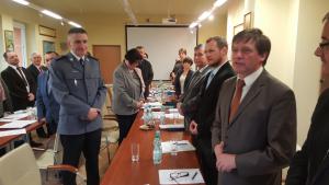 W trakcie spotkania podinsp. Sławomir Walczak - były komendant Komisariatu Policji w Kobiernicach przedstawił prezentację multimedialną dotyczącą „Analizy systemu bezpieczeństwa i porządku publicznego na terenie działania Komisariatu Policji w Kobiernicach za 2015 r.”. Jednym z punktów obrad było także pożegnanie dotychczasowego komendanta Sławomira Walczaka, który otrzymał rozkaz przeniesienia do Komisariatu Policji w Czechowicach - Dziedzicach. „Było mi bardzo miło dla was pracować, byłem tutaj prawie 3 lata, zabrakło 20 dni. Myślę, że będziecie mieli dobre wspomnienia i będę mógł pojawiać się u was na kolejnych spotkaniach.” – mówił podinsp. Walczak. Na stanowisko komendanta w Kobierniacach mianowany został kom. Jacek Śliwka. W imieniu burmistrza Wilamowic Mariana Treli, jego zastępca Stanisław Gawlik podziękował byłemu komendantowi za pomyślną współpracę na rzecz bezpieczeństwa mieszkańców całej gminy jak również powitał nowego komendanta kobiernickiego komisariatu.