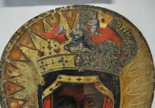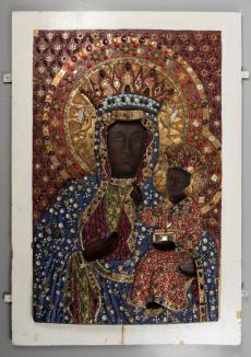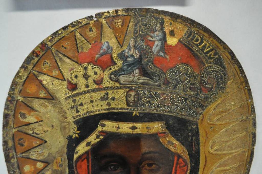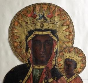 Fot. 3. Matka Boska Kazimierzowska z Rajczy, Fot. 4. Częściowo odsłonięta korona władysławowska na obrazie z Hecznarowic