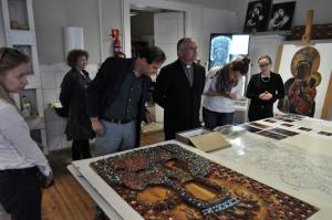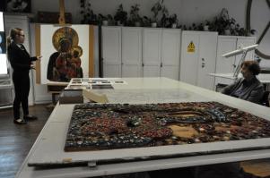 Fot. 7. Obraz z Hecznarowic w pracowni konserwatorskiej krakowskiej ASP, Fot. 8. Komisja konserwatorska w trakcie pracy