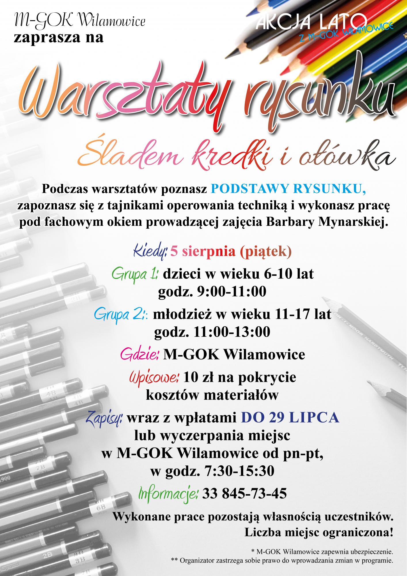 Warsztaty rysunku pod kierunkiem artystki Barbary Mynarskiej już 5 sierpnia!