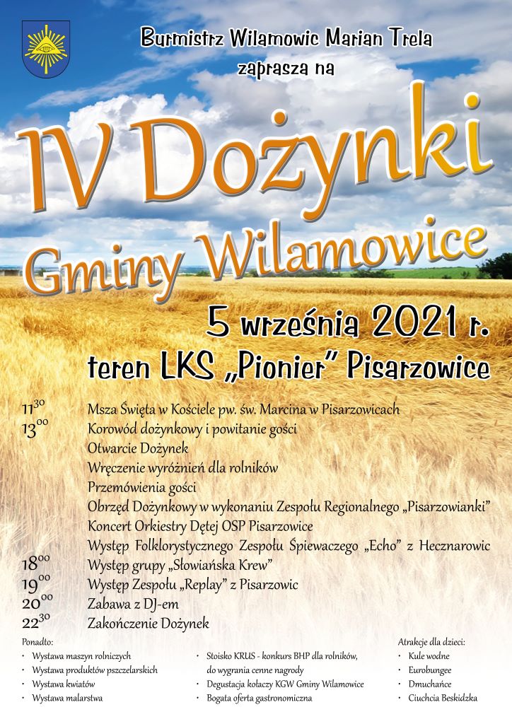 Zapraszamy do Pisarzowic na IV Dożynki Gminy Wilamowice - 5 września (niedziela)