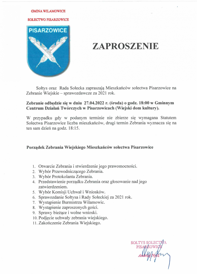 Zakład Wodociągów i Kanalizacji w Wilamowicach informuje, że w dniu 11.04.2022 r. ( poniedziałek )