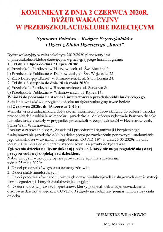 Szanowni Państwo – Rodzice Przedszkolaków i Dzieci z Klubu Dziecięcego „Karol”.